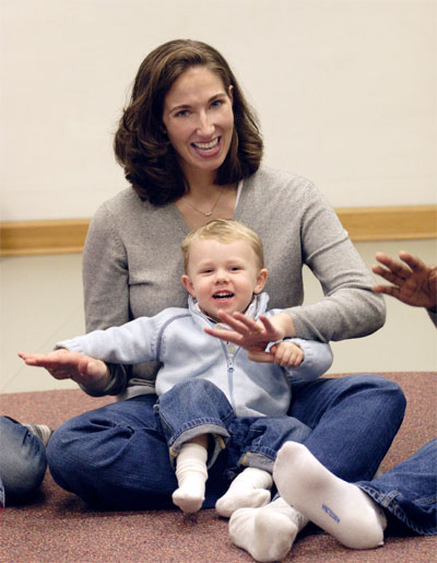How is this possible? Children learn differently than adults. They learn instinctively and constantly. They teach themselves through imitation and play, through being immersed in their environment, and through every interaction with adults and older children. The family-like setting of Music Together's mixed-age classes enables siblings to attend together, creating an ideal learning environment where infants, toddlers, and preschoolers can freely participate at their own levels.